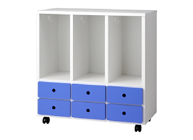 棚・フック組合せ6人用ロッカー。棚板固定式。